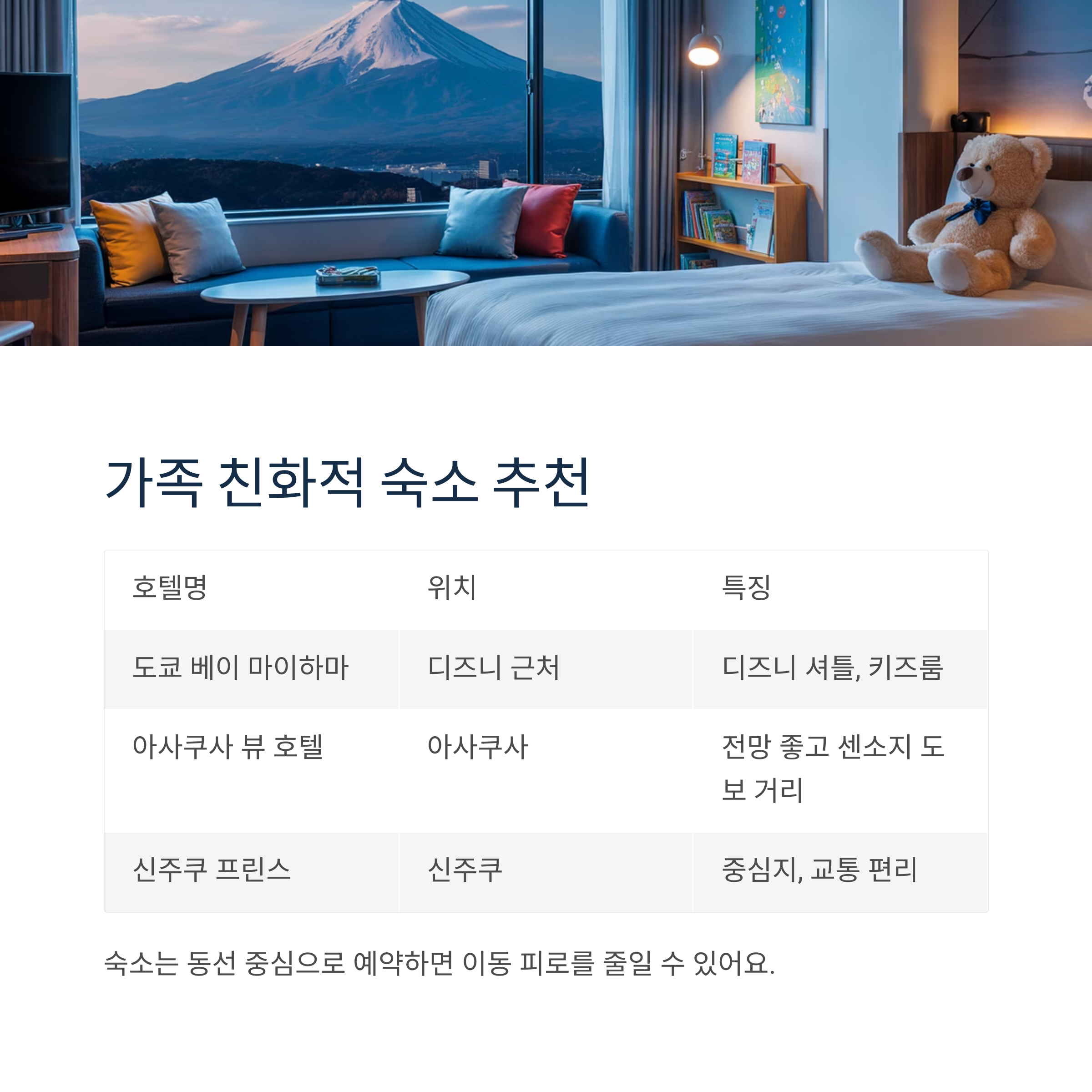 "숙소는 동선 중심으로 예약하면 이동 피로를 줄일 수 있습니다."
