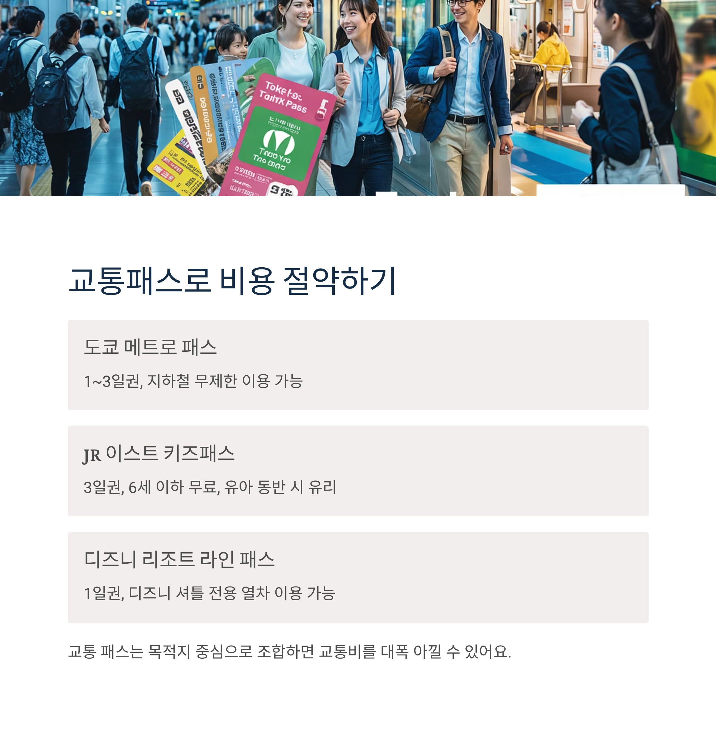 "교통 패스는 목적지 중심으로 조합하면 교통비를 대폭 아낄 수 있어요."