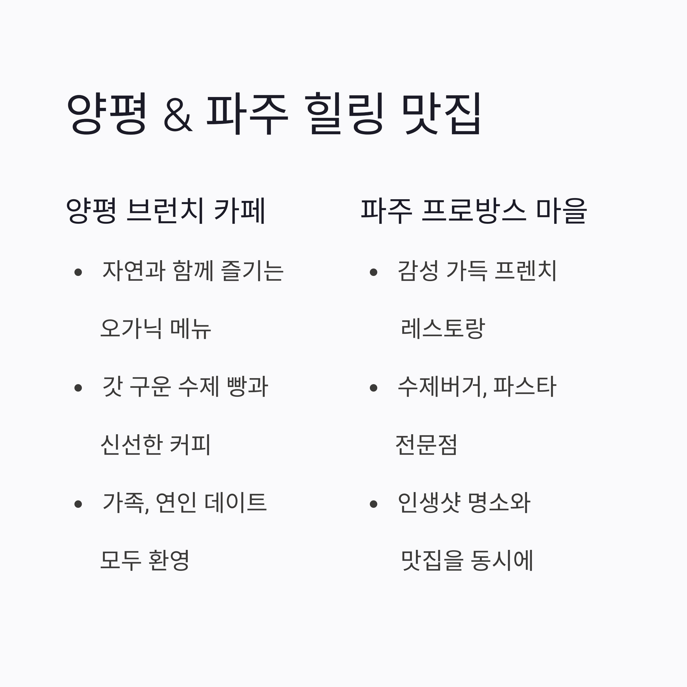 | 양평 | 브런치 카페 | 자연 속 여유로운 식사 |