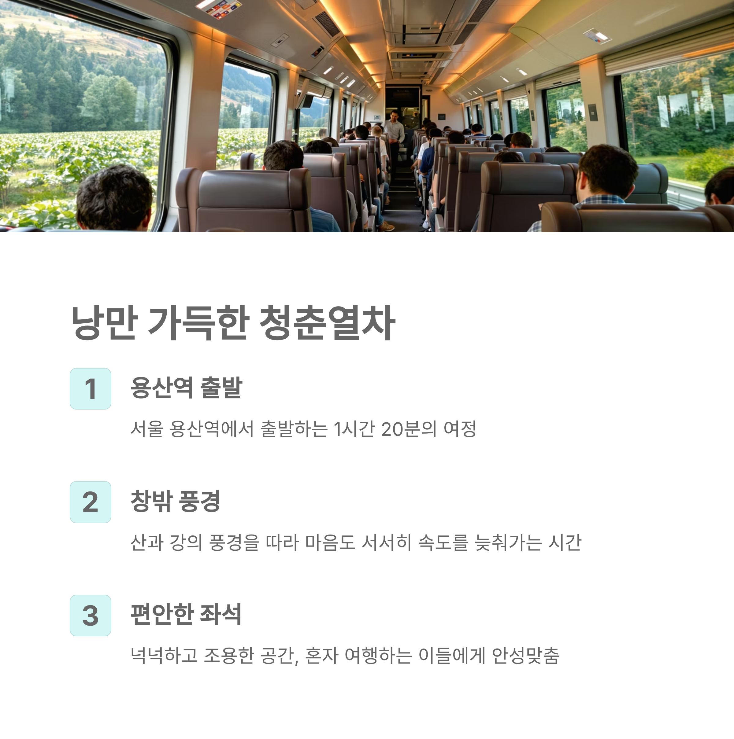이번 글에서는 춘천 청춘열차 여행의 감성과 실제 코스를 중심으로