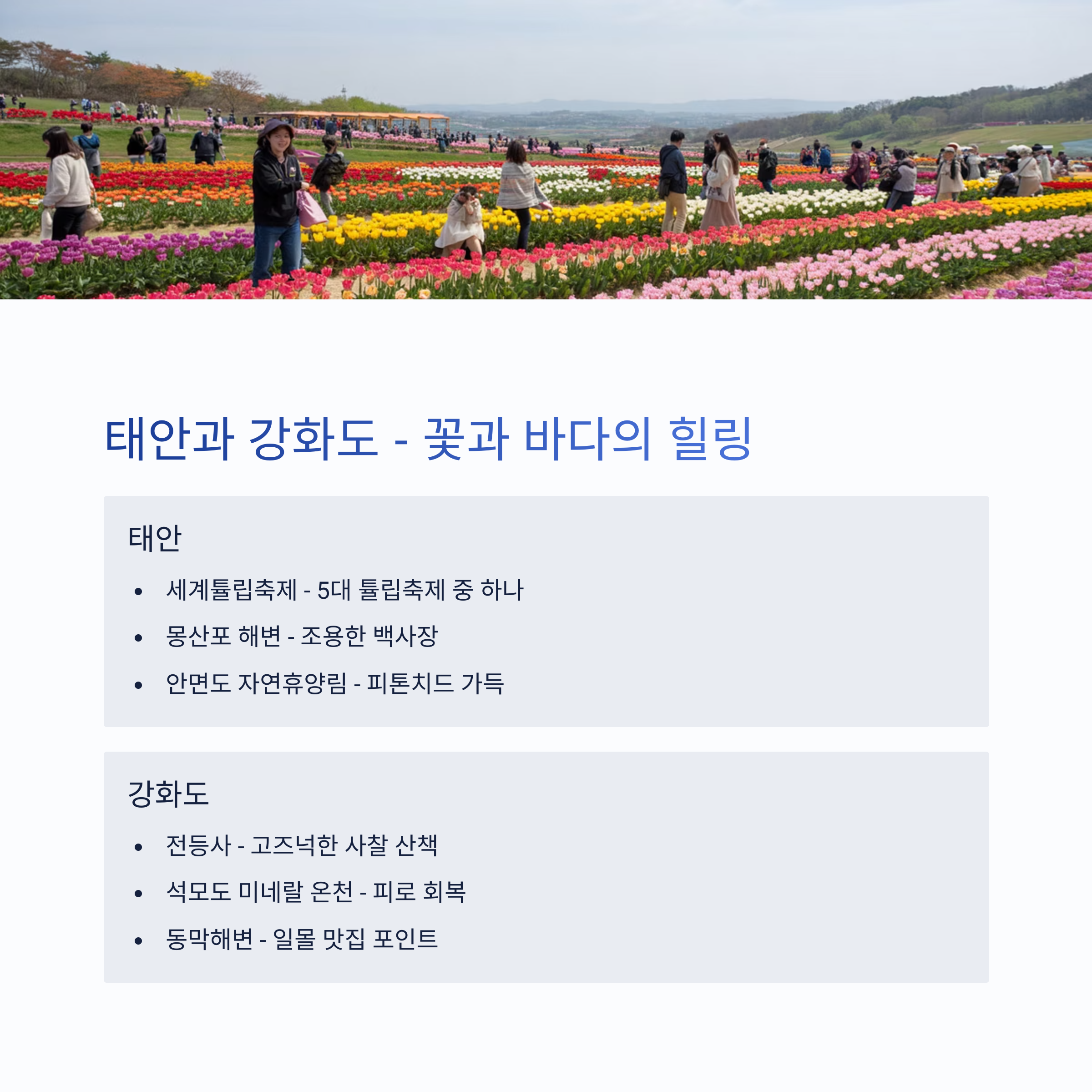 태안은 5월이면 "꽃축제와 해변 여행"을 동시에 즐길 수 있습니다.