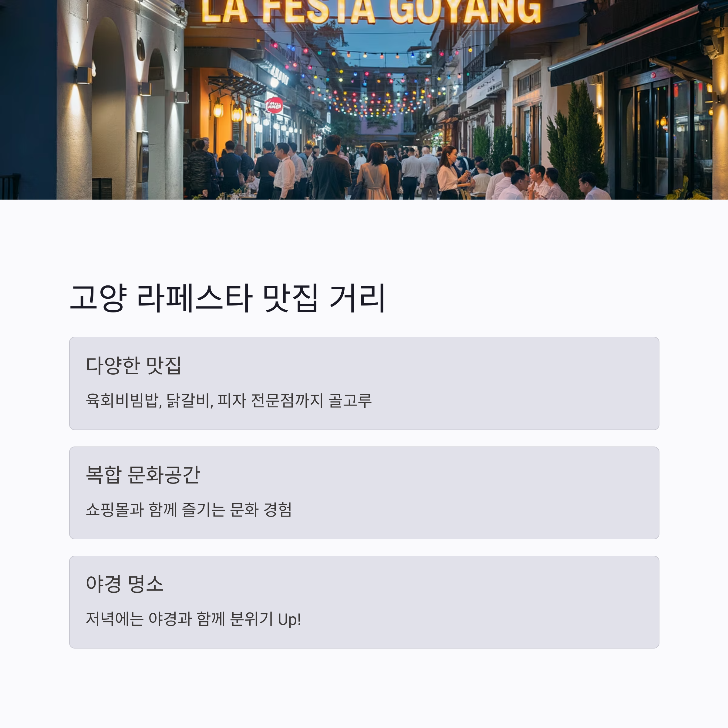 | 고양 | 라페스타 거리 | 다양한 한식, 양식 맛집 |