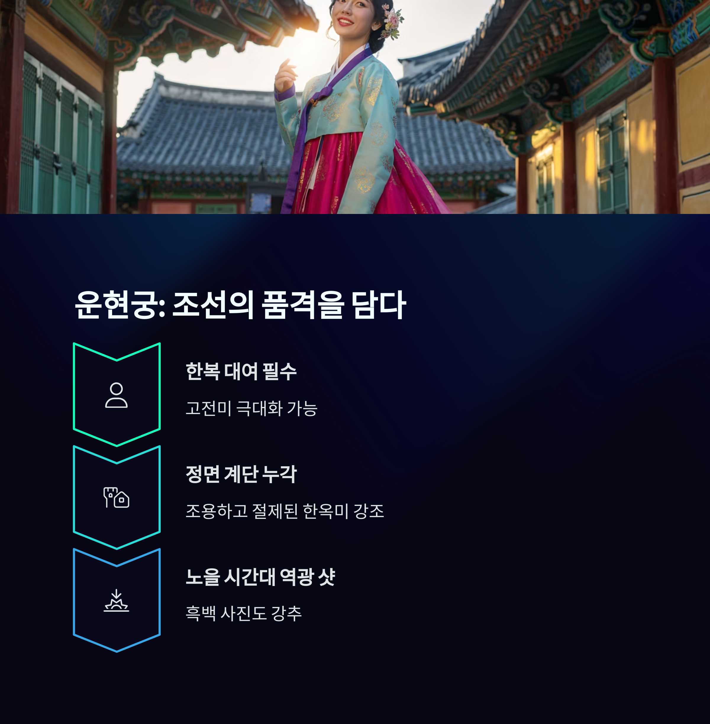 - 한복 착용 시, 사진 퀄리티 2배 상승 효과