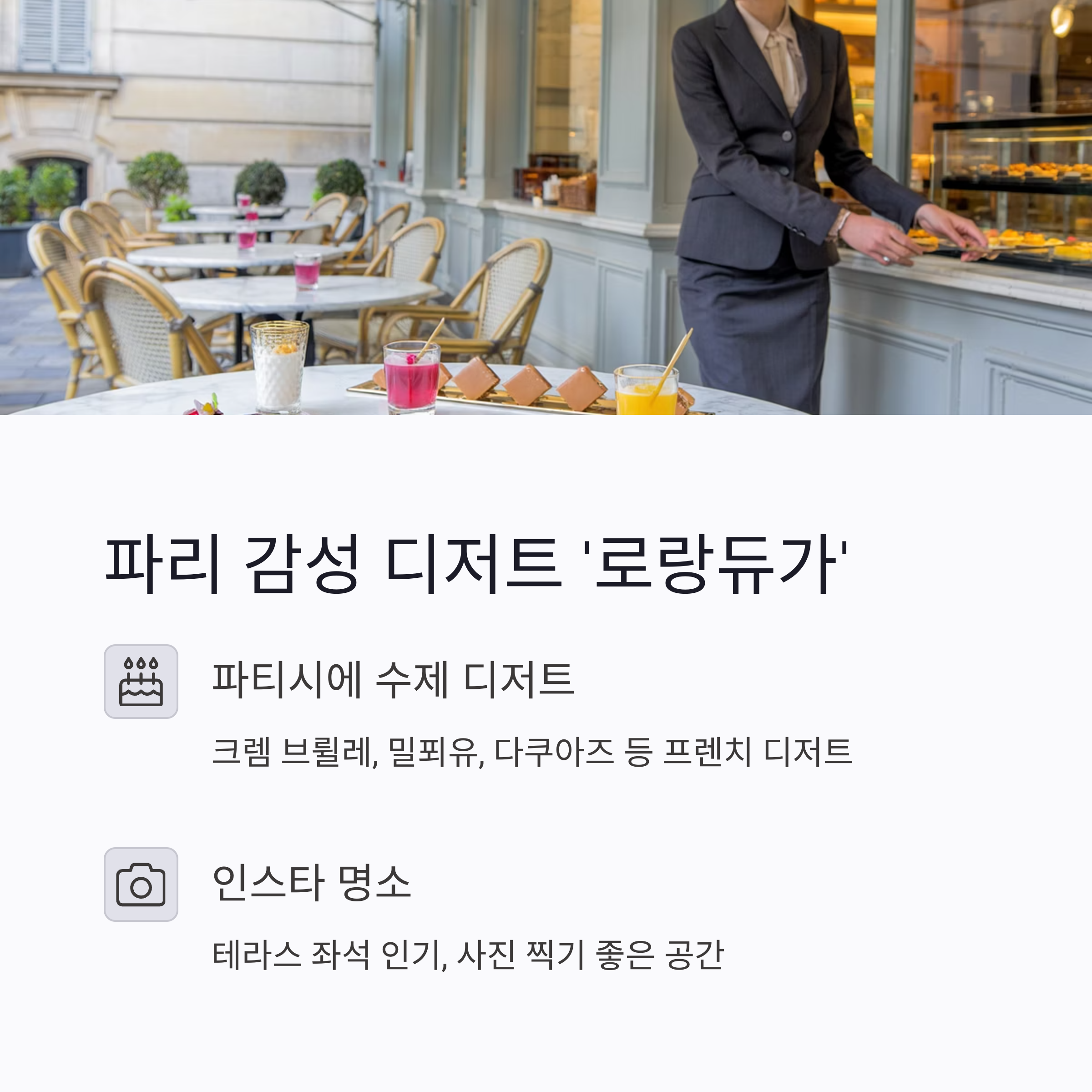 "눈과 입이 모두 즐거운, 프렌치 디저트의 끝판왕입니다."