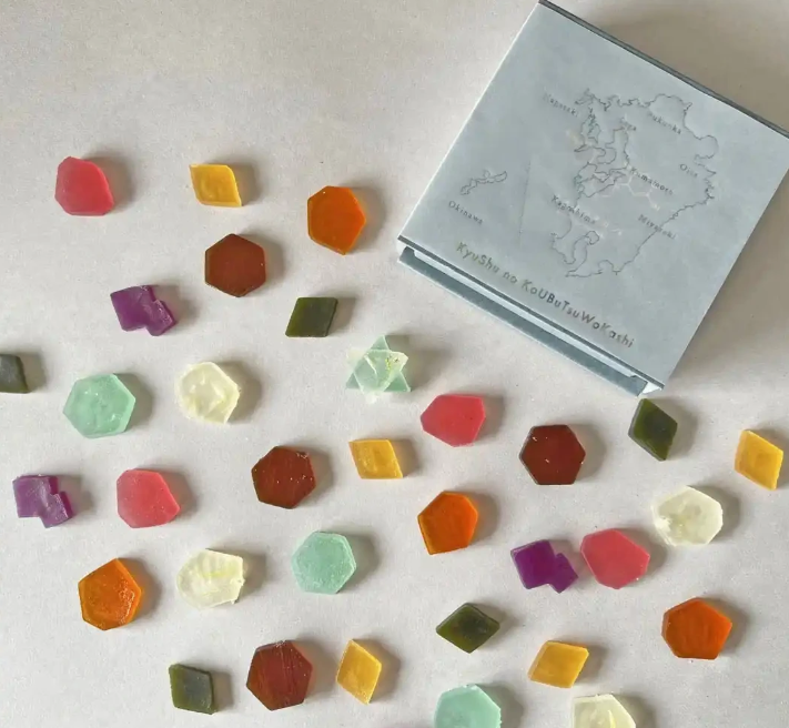 규슈 각 지역 특산 재료를 활용한 보석 모양의 일본 전통 과자.