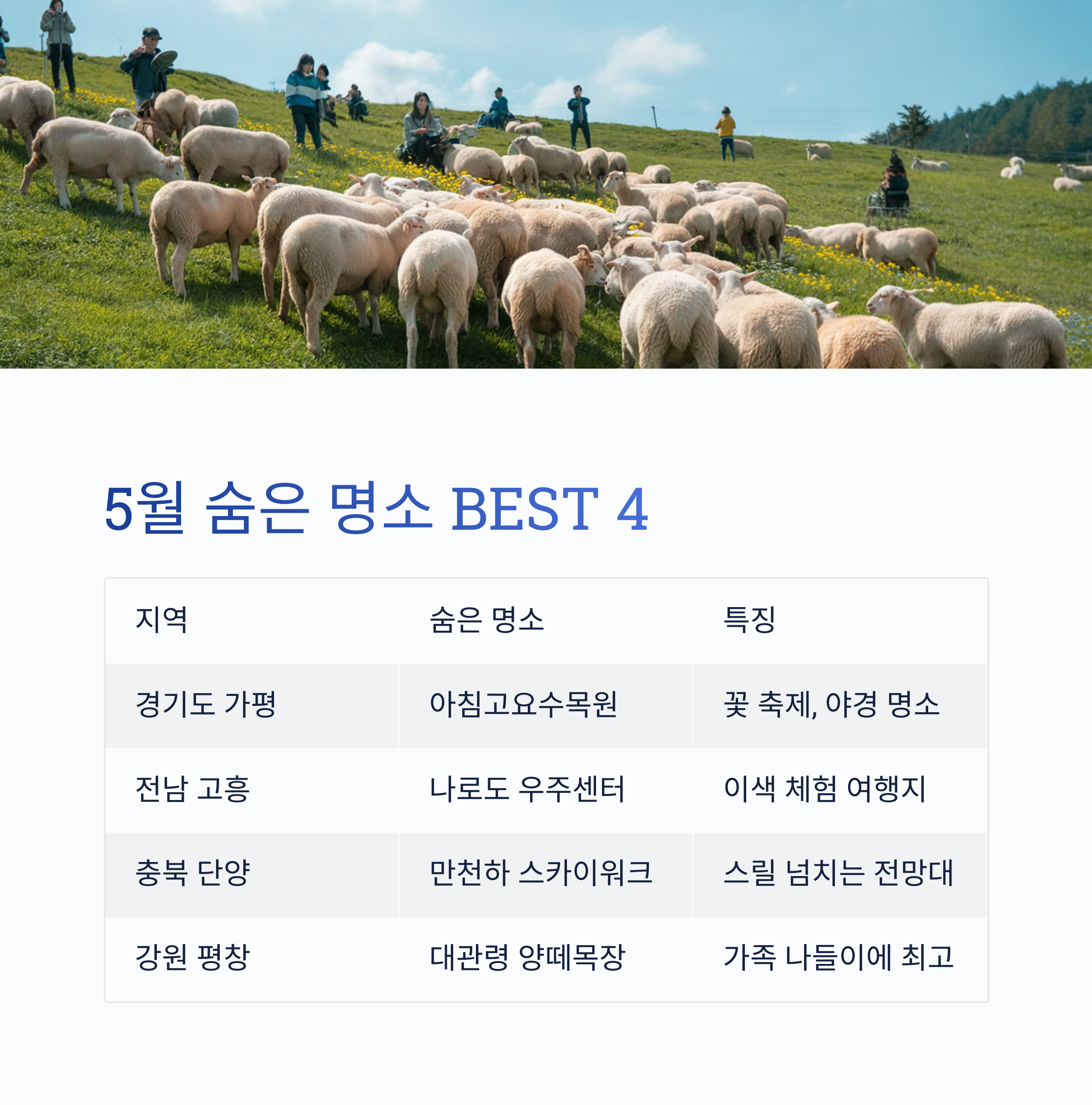 8. 특별 추천! 5월 숨은 명소 한눈에 보기 (표 정리)