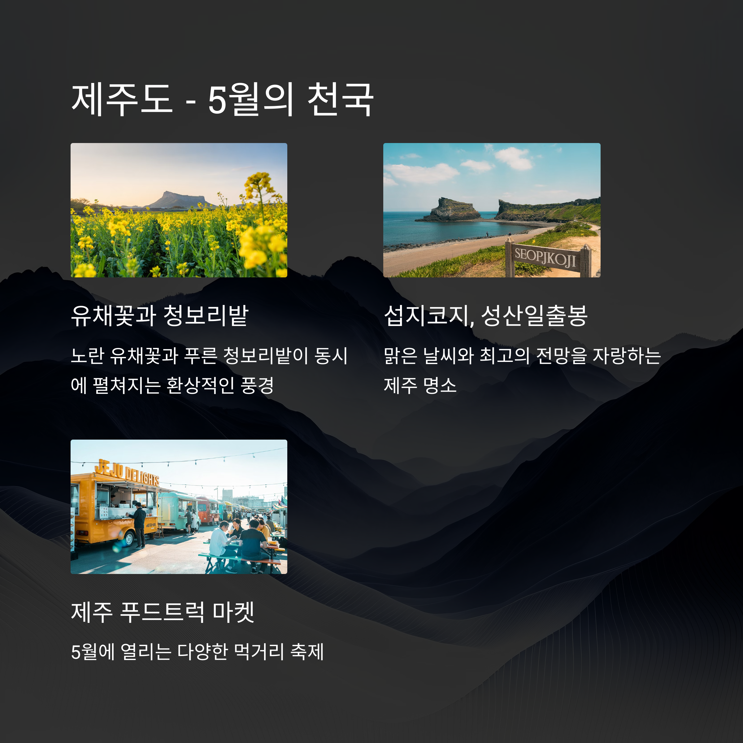 - 제주 푸드트럭 마켓 : 5월에 열리는 다양한 먹거리 축제