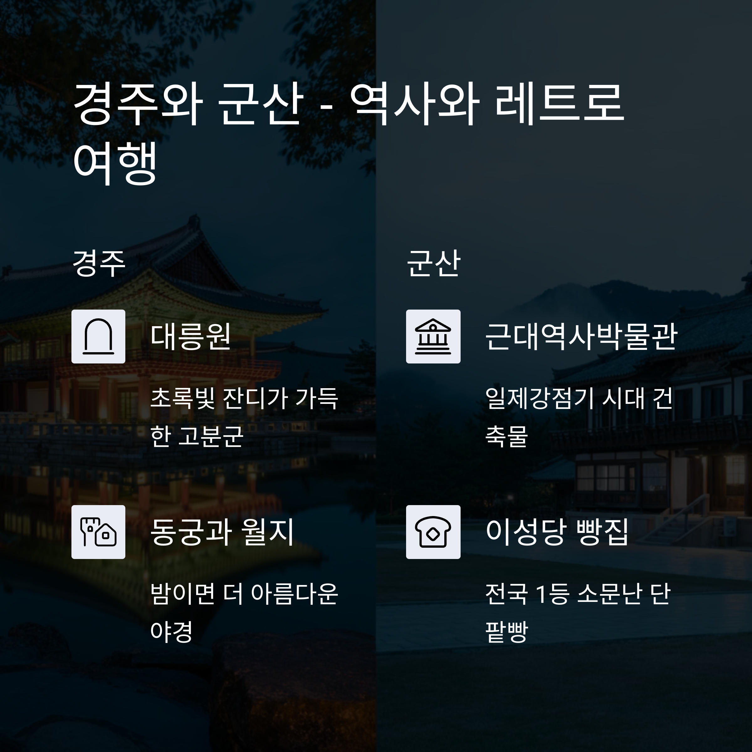 - 동궁과 월지 : 밤이면 더 아름다운 조명 속 야경