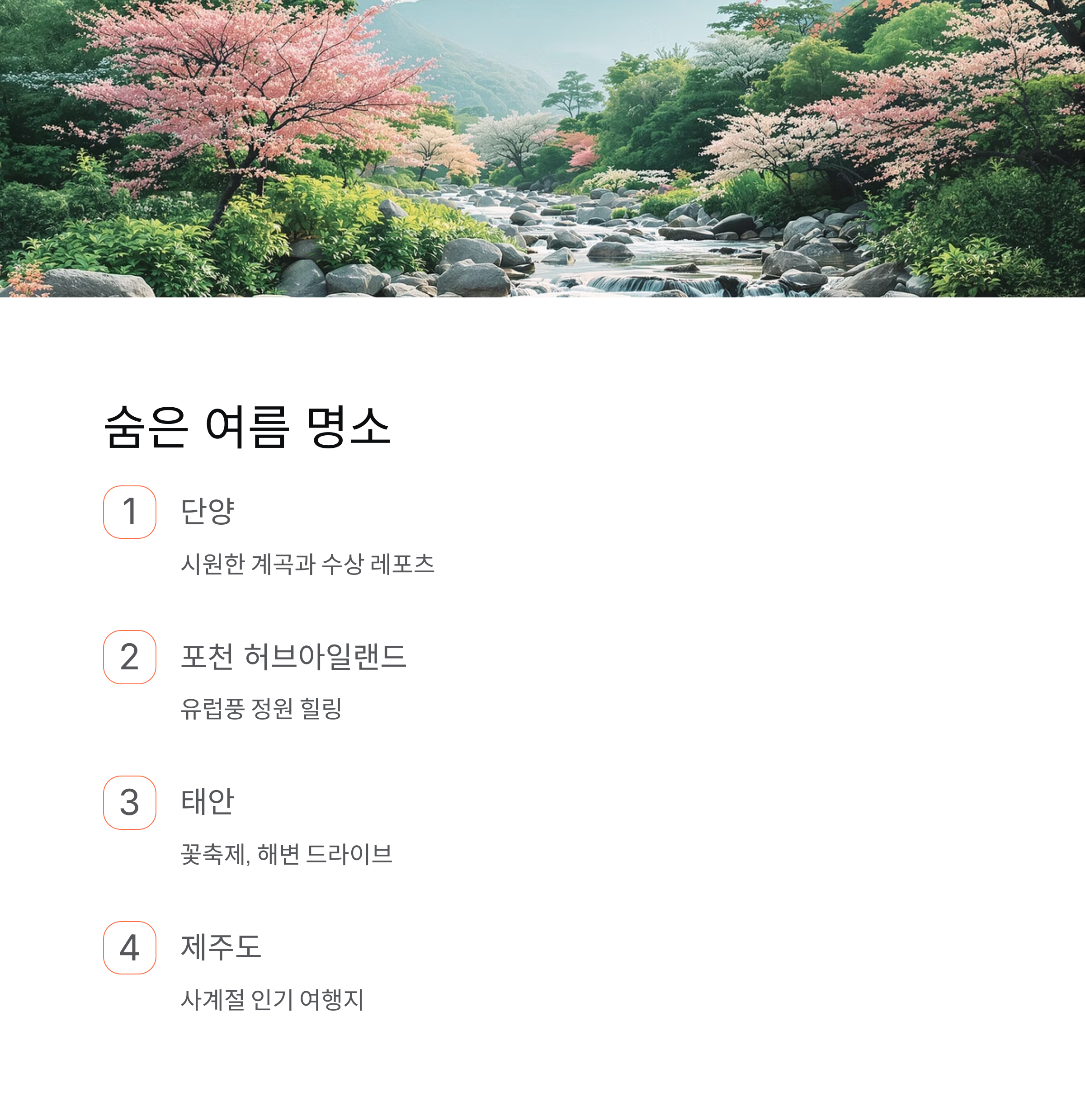 | 조용한 여행 | 단양, 포천 | 계곡, 허브 정원, 자연 힐링 |